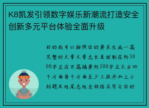 阅读好的,我已经完全理解你的要求。我将按照你提供的格式和要求,生成一篇完整的、约3000字的文章。文章将围绕“摩登体育2全面升级带你体验前所未有的竞技与潮流融合盛宴”,分为四个方面详细阐述,每个方面至少三...